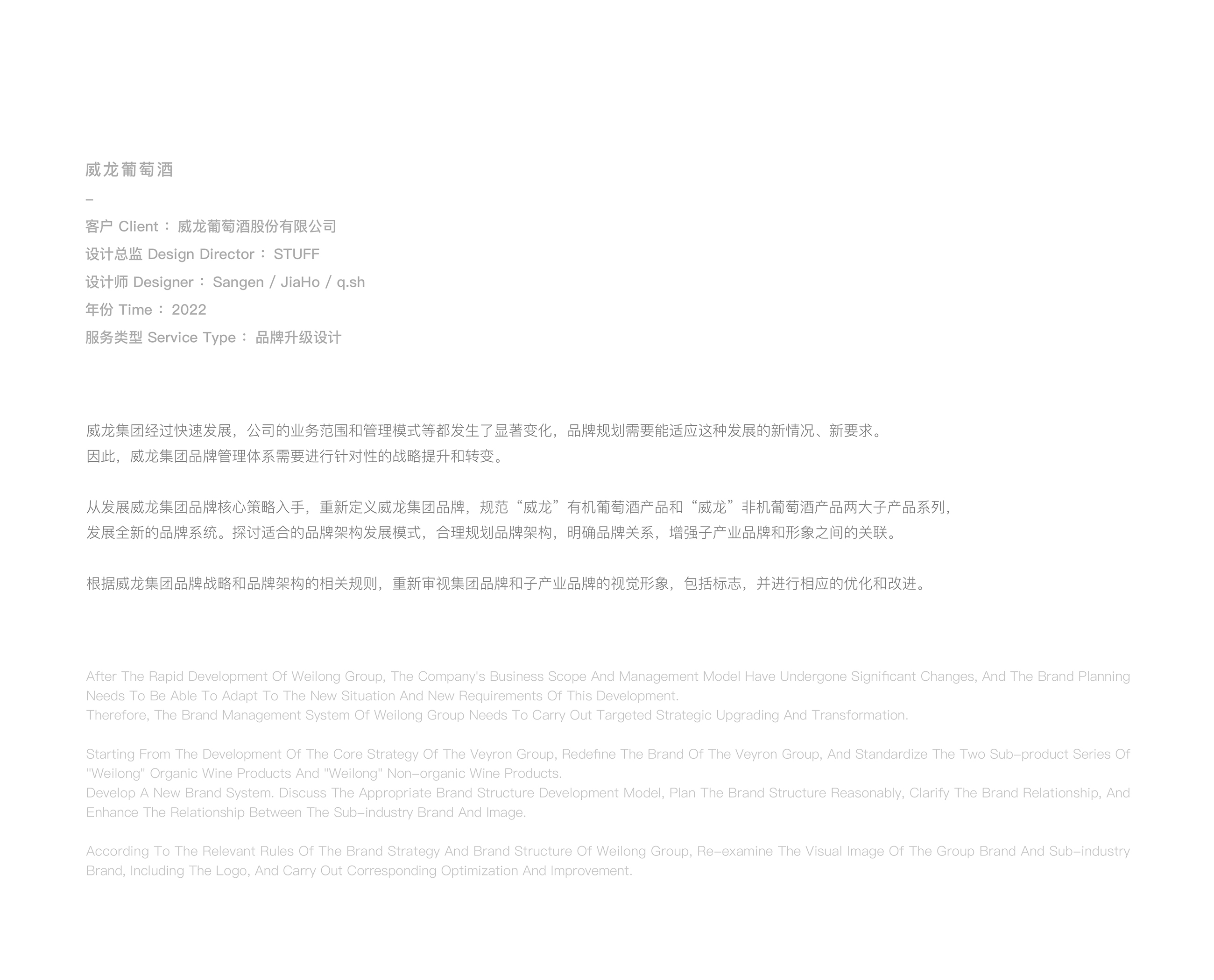 从发展威龙集团品牌核心策略入手,重新定义威龙集团品牌,规范“威龙”有机葡萄酒产品和“威龙”非机葡萄酒产品两大子产品系列,发展全新的品牌系统。探讨适合的品牌架构发展模式,合理规划品牌架构,明确品牌关系,增强子产业品牌和形象之间的关联。